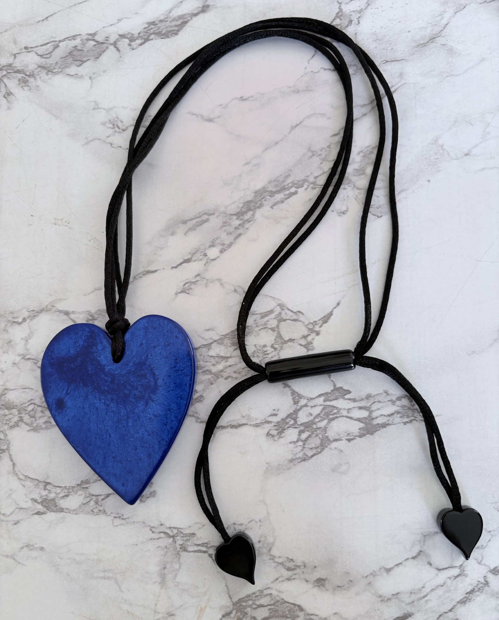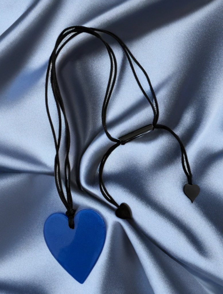 A 2.5 X2.5-inch ceramic heart necklace suitable for daytime and nighttime wear. Length is adjustable